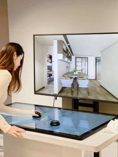 东易日盛新零售大店内,可体验东易日盛打造的数字化家装——真家科技。裸眼VR全屋3D漫游、可展示不同大小、不同设计风格。参观者还可以亲自参与设计,一键更换木材、地板,想换哪里换哪里。而且东易日盛数字化系统会及时报价,每一款产品的价格都会精准呈现,100%掌控预算,让参观者明明白白消费。参观者看到的每一件物品或材料,东易日盛强大的供应链系统都可以呈现,整个装修全流程科技化、透明化。